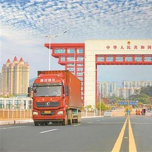 货车正有序通过东兴口岸北仑河二桥。(资料图)