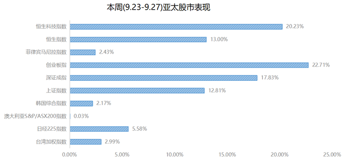 格隆汇9月29日|港A股市本周飙升。A股沪指本周涨12.81%,深证成指涨17.83%,创业板指涨22.71%,创历史最大周涨幅纪录,且27日盘中最高涨近12%,创下历史单日最大涨幅。港股方面,恒生科技指数本周上涨20.23%,恒指涨13%,向上突破20000点关口。