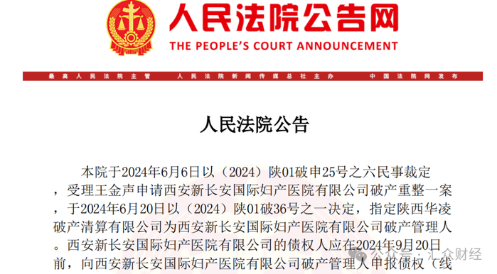 除此之外,之前还有西安慈益医院、陕西明日星医院也先后在今年3月、5月宣告破产。