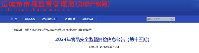 山西省运城市2024年食品安全监督抽检信息公告(第十五期)