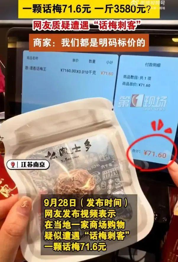 一颗71.6元!女子遭遇话梅刺客一斤3580元,商家称明码标价!市监部门回应