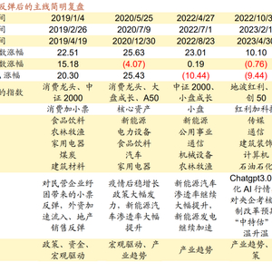 2022年年底开始,出现一轮指数级别反弹,2023年2月之后逐渐转化为结构性行情,此时由于Chatgpt3.0及以上版本横空出世,激发了新一轮对人工智能革命的热情,市场在2-4月围绕人工智能展开一轮大行情;除此之外,此时对于国央企改革,以及考核机制的变化讨论升温,市场围绕“中特估”开展了一轮较大级别的主题投资。