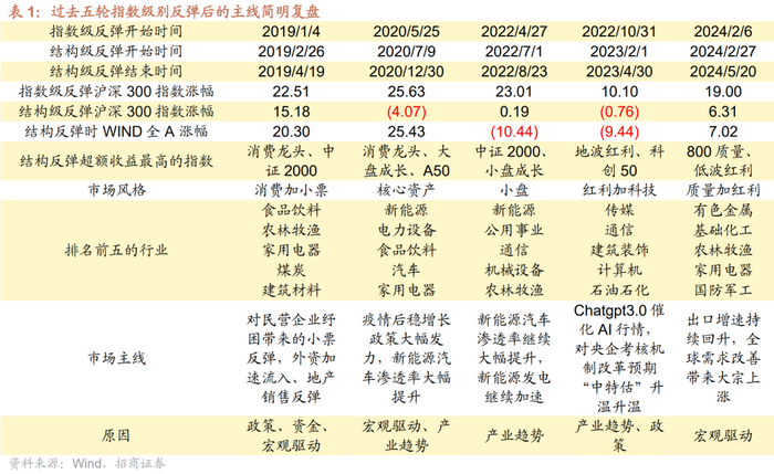 (1)过去五轮指数级别反弹后的主线简明复盘