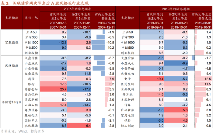 前两轮美联储进入降息周期开始后的头两次降息的时间窗口,偏大盘成长,中国的核心资产受到海外投资者的青睐。