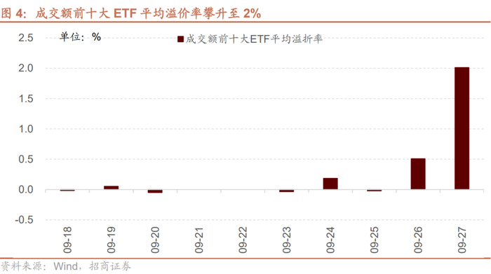 而且近期ETF的溢价率有所扩大有利于投资者买入ETF成分股股票申购套利ETF,也会对这些ETF形成正面支撑。