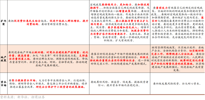 3.“要促进房地产市场止跌回稳”但同时“对商品房建设要严控增量”:相关政策旨在支撑地产销售而非开工,利好地产股和地产后周期的消费板块包括家电家居装修建材等。