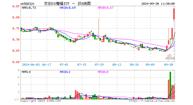 9月30日,截止午间收盘,双创50增强ETF(588320)涨11.73%,报0.838元,成交额294.06万元。双创50增强ETF(588320)重仓股方面,宁德时代截止午盘涨6.68%,迈瑞医疗涨8.98%,中芯国际涨16.58%,中际旭创涨13.28%,汇川技术涨8.05%,阳光电源涨10.83%,海光信息涨15.21%,中微公司涨16.14%,金山办公涨13.73%,澜起科技涨12.72%。