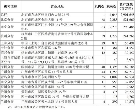 华夏银行部分一级分行情况(来自2024半年报)