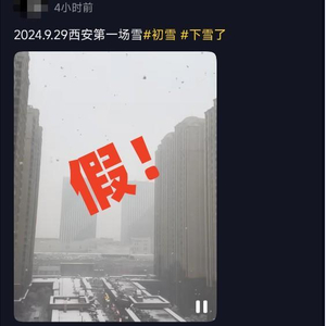 9月29日,据@西安气象:今天部分社交媒体出现西安今日(2024年9月29日)降雪为不实消息。