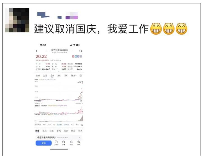 “现在A股热度确实很高,都说信心比黄金更重要,但接下来马上国庆休市,7天以后市场还是会存在不确定性。”某国有大行的工作人员提醒说,投资者还是要注意股市风险。