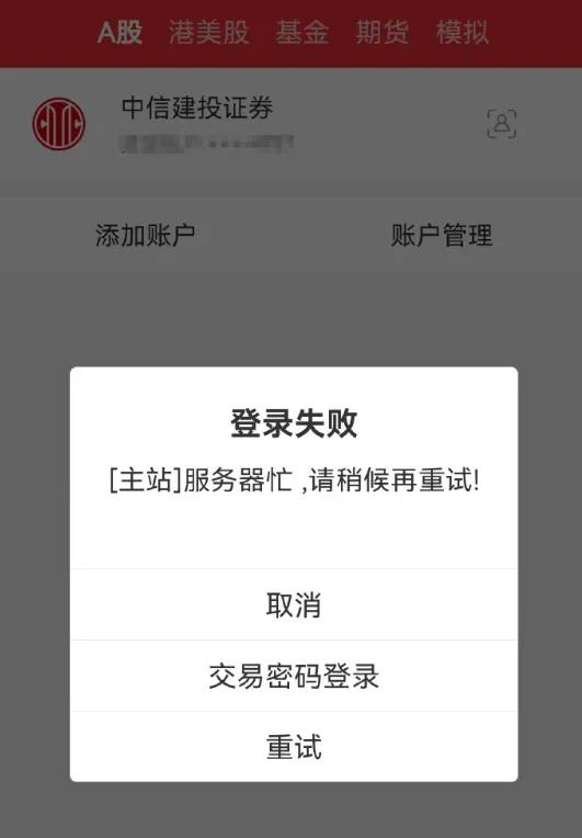 与此同时,有投资者反馈使用中信证券APP下单应答超时,影响到个人交易。中信证券内部人士对记者表示,交易量过大稍有缓慢,目前系统已恢复。