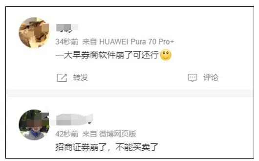 此外,据证券时报,今日早间,网友发帖称,国信证券旗下金太阳App出现行情界面一片空白、无法交易的情况。有投资者打国信证券客服电话咨询,客服表示由于单太大导致交易软件崩溃,同行招商、华泰等券商也出现类似的问题,投资者可以进行电话委托下单。
