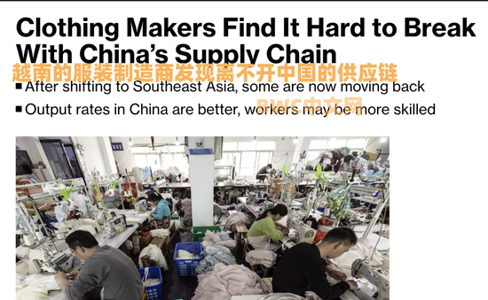 这一迹象表明,一些从亚洲市场转移过去的制造业供应链从越南获得的销售市场要远低于预期,甚至部分纺织工厂更有好几个月没有收到新订单了,这也使得部分工厂又重新返回到中国市场,因为中国市场的产出更高,工人的技能也更熟练。