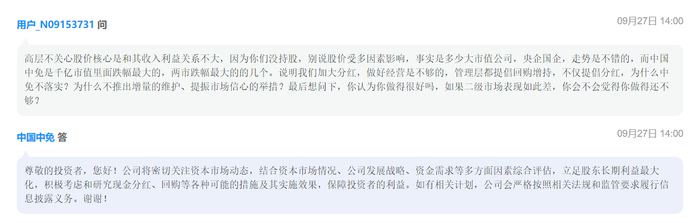 9月27日下午,中国中免召开业绩说明会,被股价牵扯神经的投资者的提问集中在股价提振上。