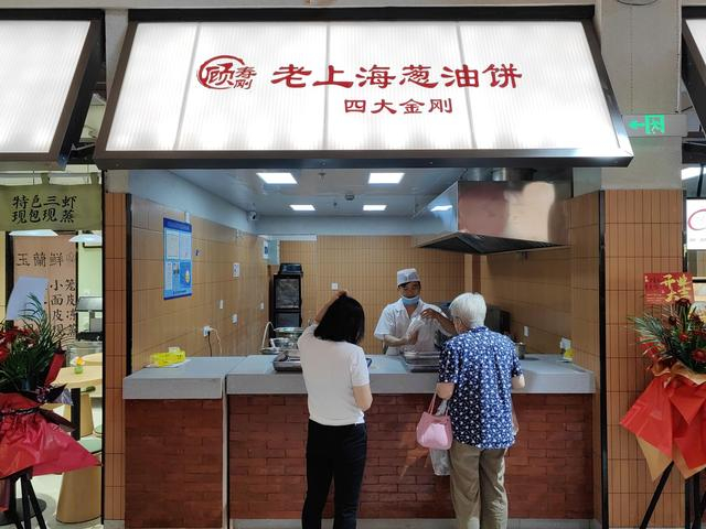 来自蒙西菜场的“网红”美食沪食光上海老羌饼,也把新店开到这里,吸引不少周边市民前来尝鲜。“这个羌饼很好吃,外皮酥脆,中间的面饼松软且有层次,调味也恰到好处,之前经常去蒙西菜场排队买,现在开到家门口,更方便了。”