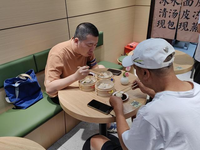 档口虽小,却极具特色。入口处一家名叫“玉兰鲜小笼”的小笼馆,由东风饭店退休的高级点心师陈师傅担任主理人。店主董先生向记者介绍起这家餐馆的招牌美食——三虾小笼,其精心复刻了苏州传统点心三虾面的浇头配方,每一口都蕴含着地道的苏州风味。“比起对面的日月光中心,菜场租金要低多了,我们主打一个好吃不贵,3只一份的三虾小笼卖18元。”