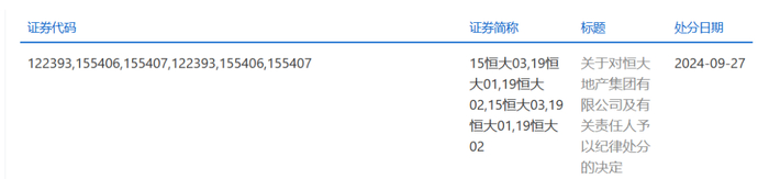 而在几天前的9月27日,上交所也已对恒大地产及有关责任人予以纪律处分,涉及的债券包括15恒大03、19恒大01、19恒大02、15恒大03、19恒大01和19恒大02。