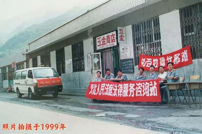 这里有一辆小车,穿梭在大山深处。二十五载巡回办案路,我们探索出“固定巡回”与“流动巡回”相结合的巡回审判工作模式。以固定巡回审判点为支点,将诉讼服务覆盖辖区范围构建为“十五公里诉讼服务圈”。