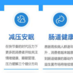 据美国食品行业代理公司Presence数据,2022年五大营养健康产业新趋势中,肠道健康仅次于减压安眠处于第二位