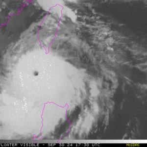 ▲葵花卫星监测到的台风“山陀儿”可见光云图动画(时间段:2024年10月1日01时30分至1日08时30分)