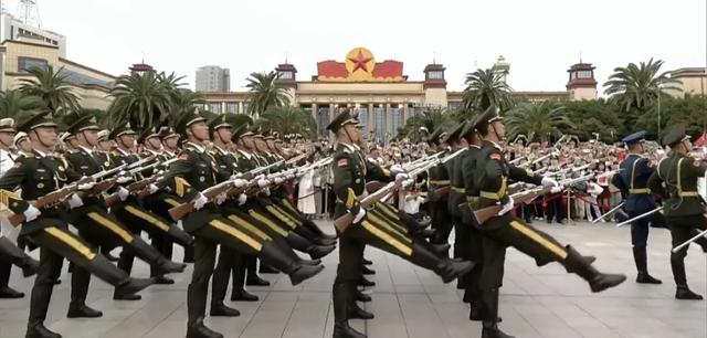 “入场——托枪——齐步走!”清亮的口令声犹如破晓的洪钟,震撼人心,随之而来的是由远及近的脚步声,整齐划一、铿锵有力。国旗护卫队经八一南昌起义纪念塔,护卫着鲜艳的五星红旗向国旗台行进。随着指挥员口令不断调整步伐,他们气宇轩昂走到国旗台前。