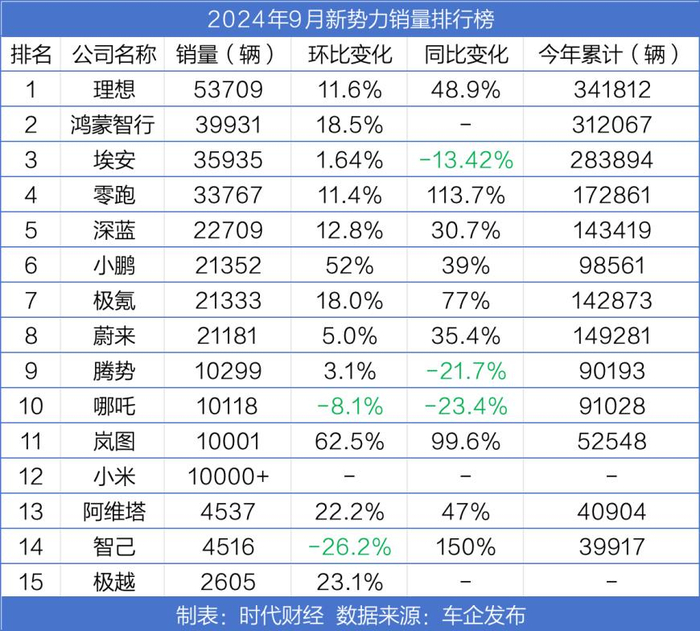 新势力品牌率先交出销售旺季“金九银十”成绩单。