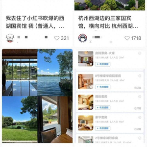 上海女孩“金渐橙被我吃掉啦”也在社交平台分享了自己入住杭州西子宾馆、扬州迎宾馆等多家国宾馆的体验。