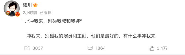 针对《749局》的口碑争议,影片导演陆川2日在微博连发三条博文回应。