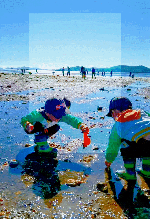 礁石上的海蛎子、石头缝里的小螃蟹,还有那些深埋沙中、等待被挖掘的蚬子。每一次弯腰、每一次触摸,都可能带来意想不到的惊喜。