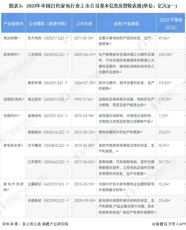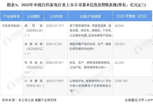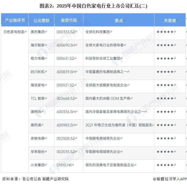 2、白色家电行业上市公司基本信息对比