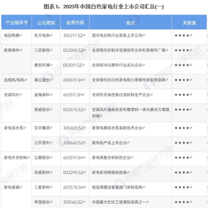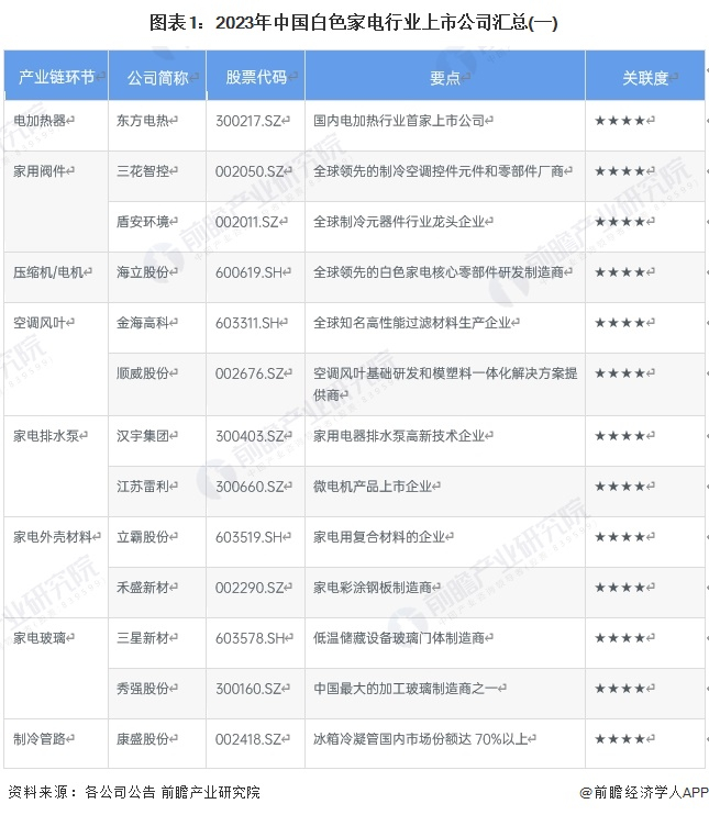1、白色家电行业上市公司汇总
