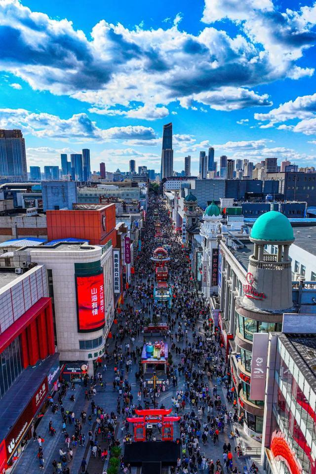 10月1日,国庆长假首日,沈阳中街商业街人潮涌动。与此同时,各地“旅游+”活动花式揽客进一步刺激旅游消费意愿。