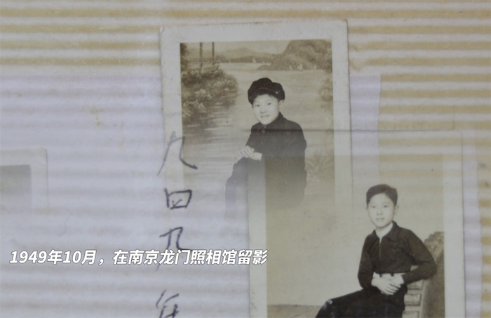 “这张半寸照片是1949年10月拍的,那时我还在上小学呢!”“这张全家福是1983年我们一家四口在照相馆拍的,背景布上是城市的名片——南京长江大桥。”“这是新中国成立70周年时,我们家四代人在汉中门广场用手机拍摄的‘国旗同框照’。”
