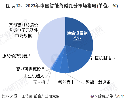 从细分产品构成来看,2023年我国智能终端产业主要由通信设备和计算机制造业以及智能车载设备制造业构成,三者分别占比28.86%、18.70%和5.66%。