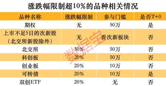 据证券时报·数据宝统计,梳理了单日涨幅有望超过10%的品种,合计共有7个,其中期权、北交所、科创板等参与门槛较高。从交易便利度来看,期权、可转债、ETF均为T+0交易。