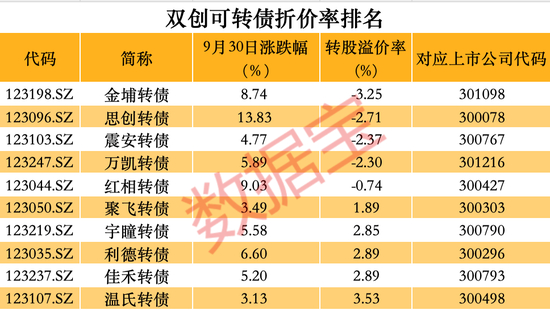 转股溢价率较低的双创股票可转债,节后有望迎来补涨。数据显示,有5只创业板个股可转债转股溢价率为负,金埔转债转股折价率最高,超过3%。