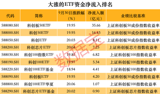 在涨幅超15%的ETF中,科创板50ETF和科创50ETF资金净流入均超15亿元,科创ETF、科创芯片ETF、科创100指数ETF等吸金均超5亿元。