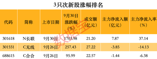 相对来说,次新股的参与条件较低,而部分次新股没有涨跌幅限制,导致单日涨幅超过10%在牛市当中实属稀疏平常。节前部分次新股已经获得资金青睐,9月30日上市的长联科技上市首日涨逾17倍,9月26日上市的两只次新股无线传媒、合合信息节前最后一个交易日均上涨,前者涨257.43%,后者涨95.99%。