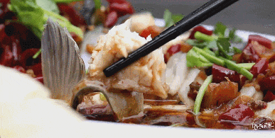 鲜美的鱼肉上铺满了通红的辣椒段