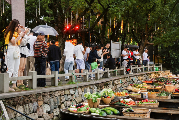 来自江苏的大学生晓敏则最爱逛“水上市集”。曾经的慈城古县城,水街合一,街道一半是水、一半是路,家家户户屋后通船,那里曾是来往船只的货物集散地。穿越千年,如今船只轻摇如画,满载着秋日的丰收与惊喜,也售卖慈城年糕、白茶等各种慈城特产。“我打算买点慈城年糕回去,在水上市集交易,充满了烟火气和人情味,我喜欢慈城这个地方。”晓敏说。