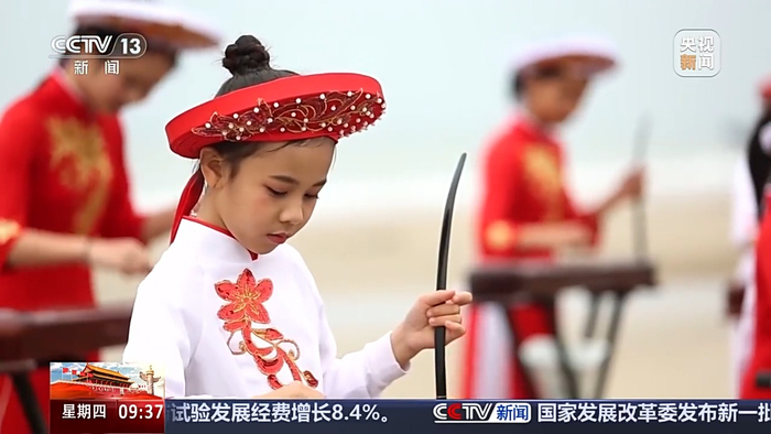总台央视记者 武兵:这片海滩叫金滩,这里与东兴口岸只有28公里的距离,在这里也是我国唯一一个海洋民族京族的聚居地。京族可以说是既沿边又沿海,这里与越南的万柱旅游区可以说是一海之隔,从这里到越南的下龙湾也只有70海里。京族历史悠久,体系完整,有自己的文字、语言和音乐。今天我们就先来看一下京族的非物质文化遗产独弦琴。
