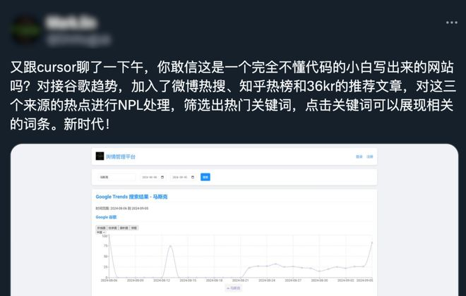 也有人和 Cursor 聊了一下午,做出一个可以筛选中文互联网热词的工具。