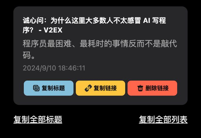 插件还能复制所有网页标题,点击一下就是一份完整的参考资料,不需要自己一个个理了。