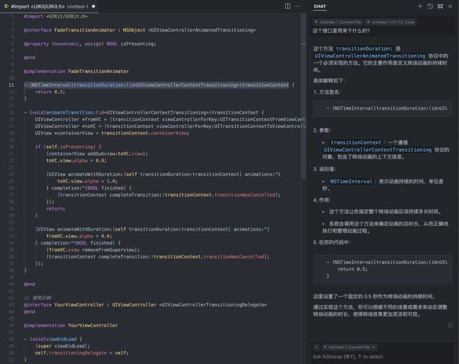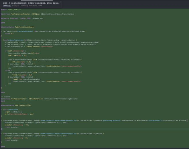 让它做出一个 iOS 应用的页面专场交互需求,虽然跑出的代码无法运行,但架子给你搭起来了。