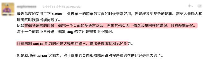 不过 Z 表示 Cursor 这水平离替代程序员还早。