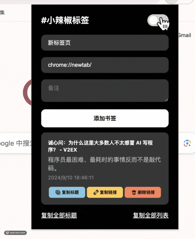 现在我只要点击一下插件图标,它就会自动记录网页的标题和链接,并支持我备注一段文字。