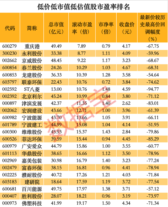 低价低市值低估值股票