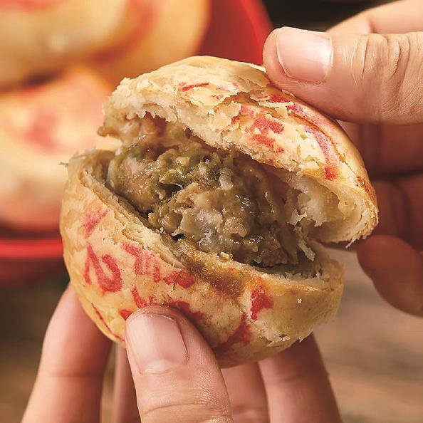 还有一款不得不提的咸点心,就是鲜肉月饼。严格说来,鲜肉月饼是一种苏式小吃,但是它在上海也很有名。近些年来,鲜肉月饼大出风头,也是和上海有关。鲜肉月饼主要由面粉和猪肉制成,刚出炉的时候外酥里嫩,一口鲜香,让人欲罢不能。要说好吃的老字号鲜肉月饼,那真是争奇斗艳。淮海路上的光明邨、长春食品商店,南京路上的新雅、泰康、真老大房、第一食品、邵万生,都有自己别具一格的鲜肉月饼,以及在此基础上创新出来的咸味现烤月饼,且它们早已成为了“现象级点心”。