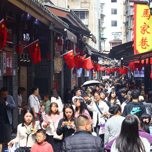 国庆期间,绵阳的小吃街马家巷游人如织。陈冬冬 摄