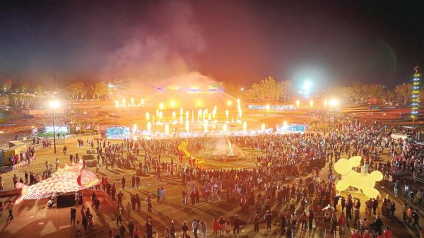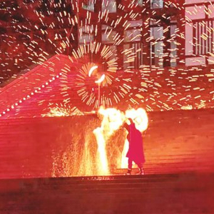 在璀璨的星空下,摩托车特技队员为游客们带来了一场精彩的表演。一辆辆摩托车在球形铁笼中旋转、交错、急速行驶,高超的技术赢得了观众的阵阵喝彩;专业的人偶表演团体与小朋友亲密互动,邀请小朋友参与各种有趣的游戏;蒙古族舞者身着华丽的民族服饰,展示传统的蒙古舞蹈;景区准备了10只烤全羊,通过抽奖和参与游戏的方式免费发放;在非遗火壶表演中,表演者灵活地舞动着手中的火壶,随着节奏的加快,火焰在空中划出一道道优美的弧线,如流星般绚丽夺目,令现场观众赞不绝口。丰富多彩的表演和互动项目,让市民和游客尽享假日欢乐。